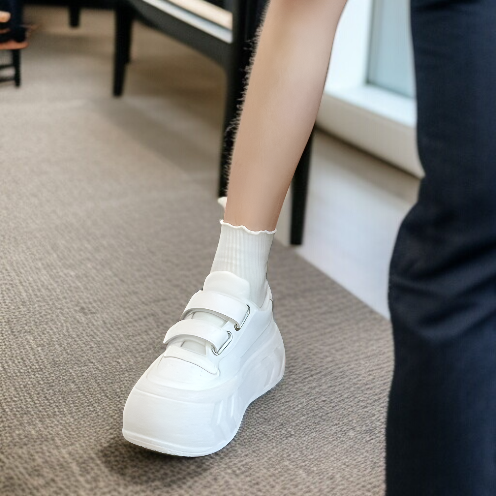 ● 厚底設計により脚長効果抜群。スポーツカジュアルな雰囲気で、歩きやすさと美脚見えを両立した一足です。